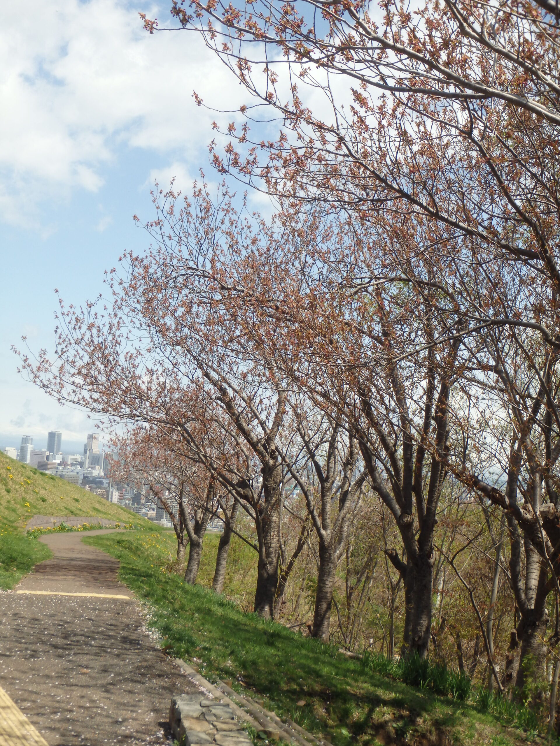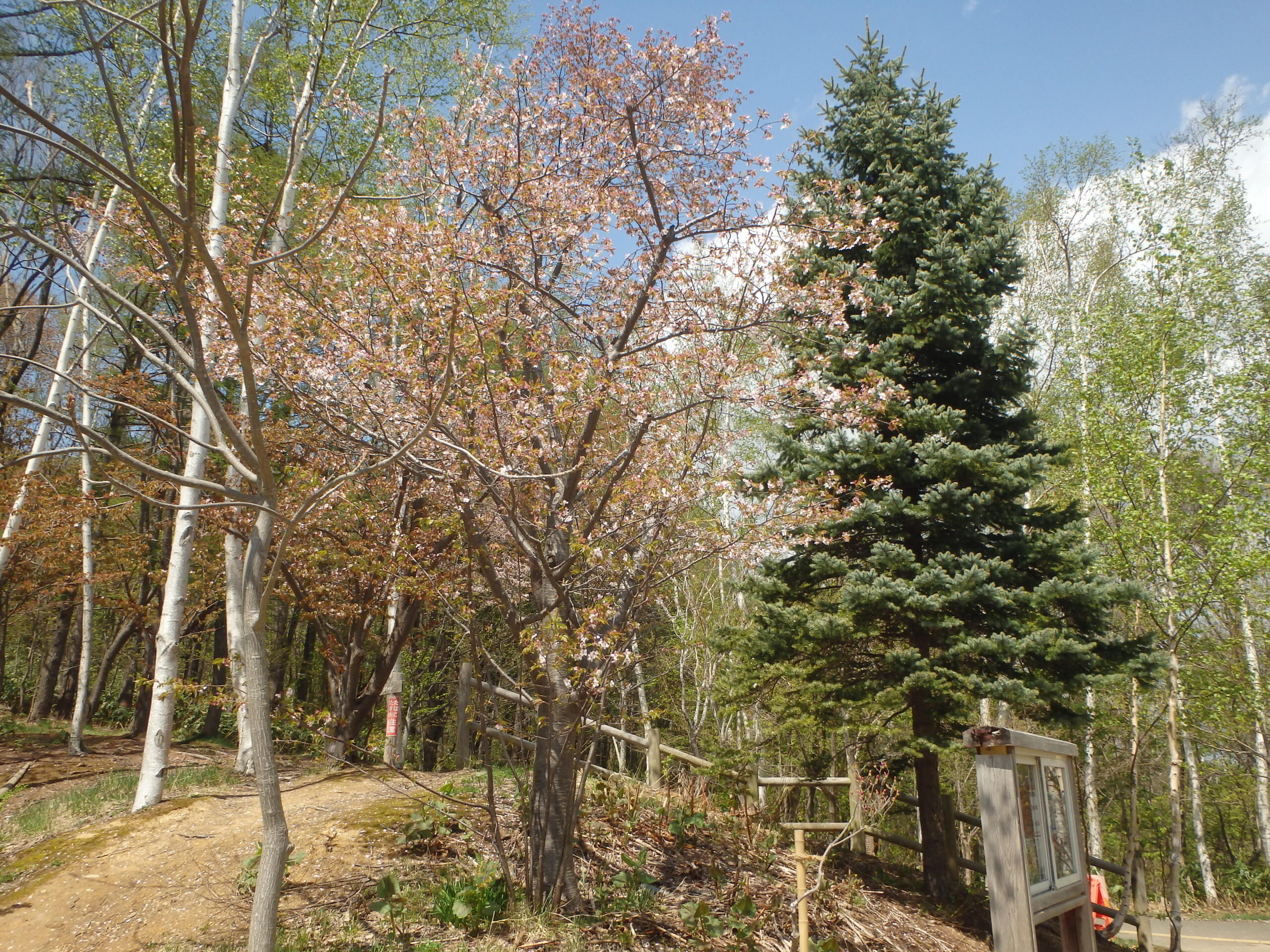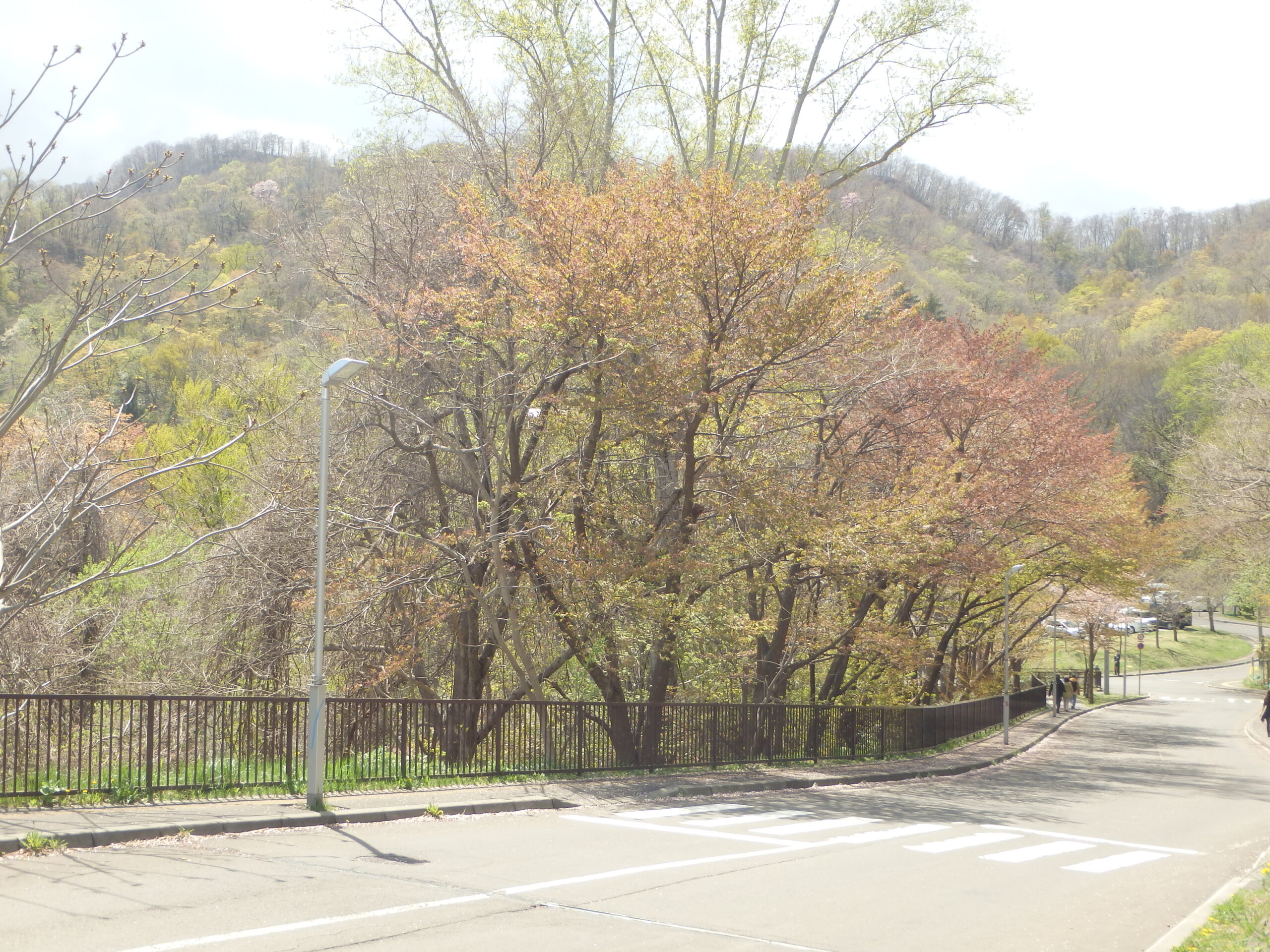 旭山記念公園の桜は、葉桜になっている木もありますが、ポートランドの森や巨木の谷付近の桜などは、見ごろを迎えております。
