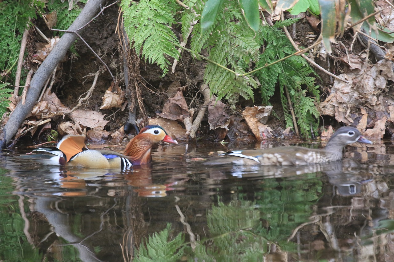 2023年4月29日、オシドリのペアが旭山都市環境林「ふしぎ池」に来ていました。