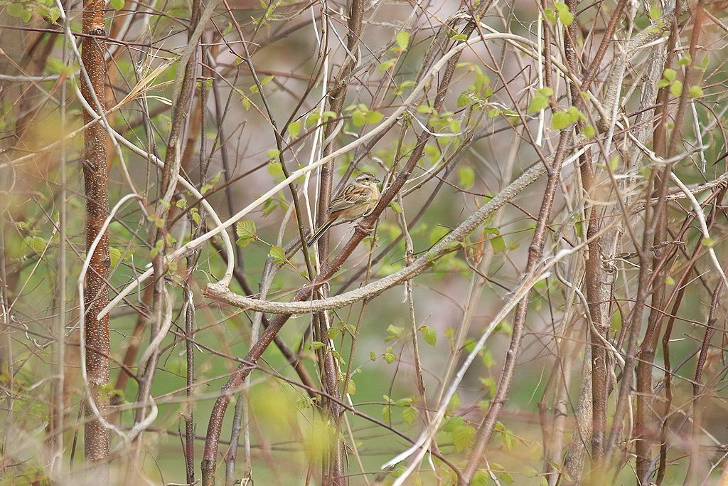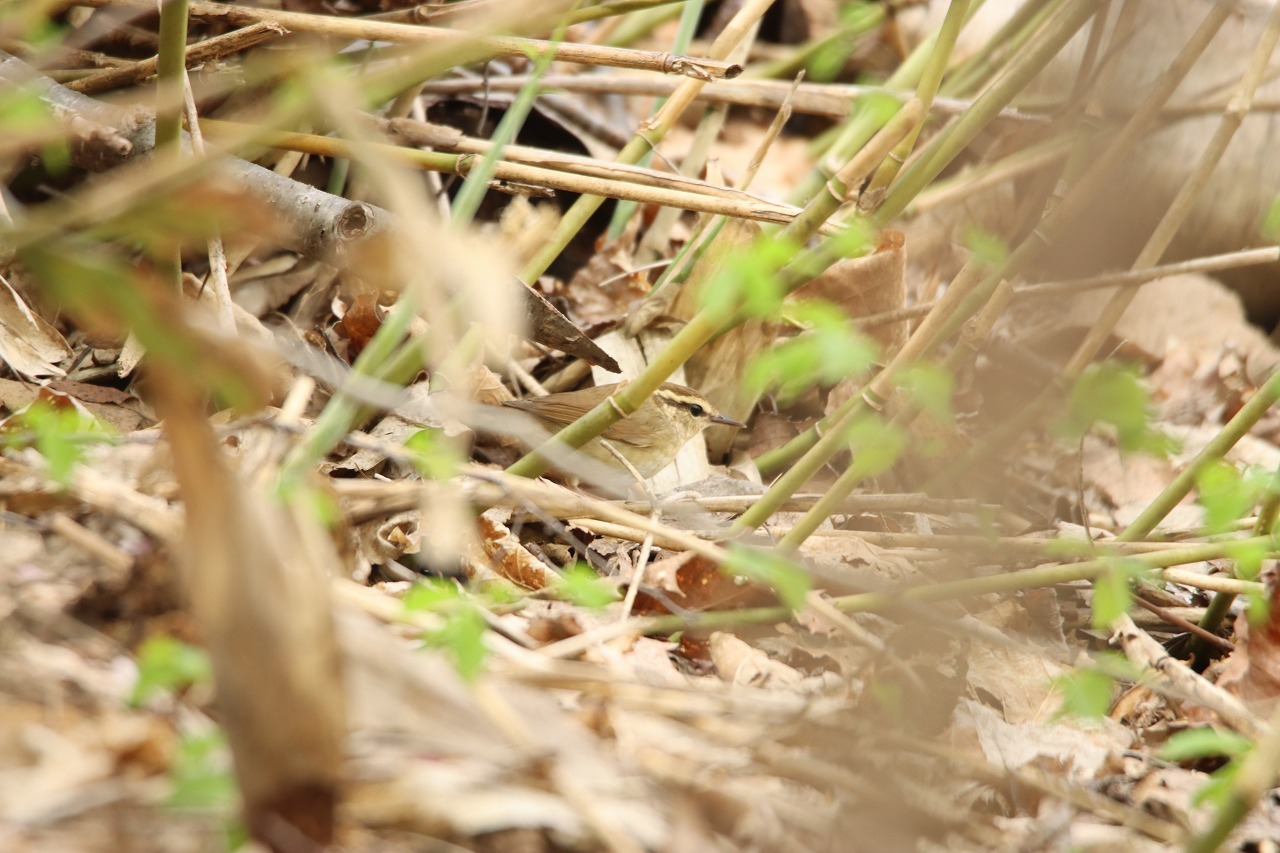 森の家の周りで2羽が囀り合戦をしていることがあり、またこの時期は笹から出て低木にとまって囀りしたり、地面で採餌する姿を見る機会が意外と多いです。