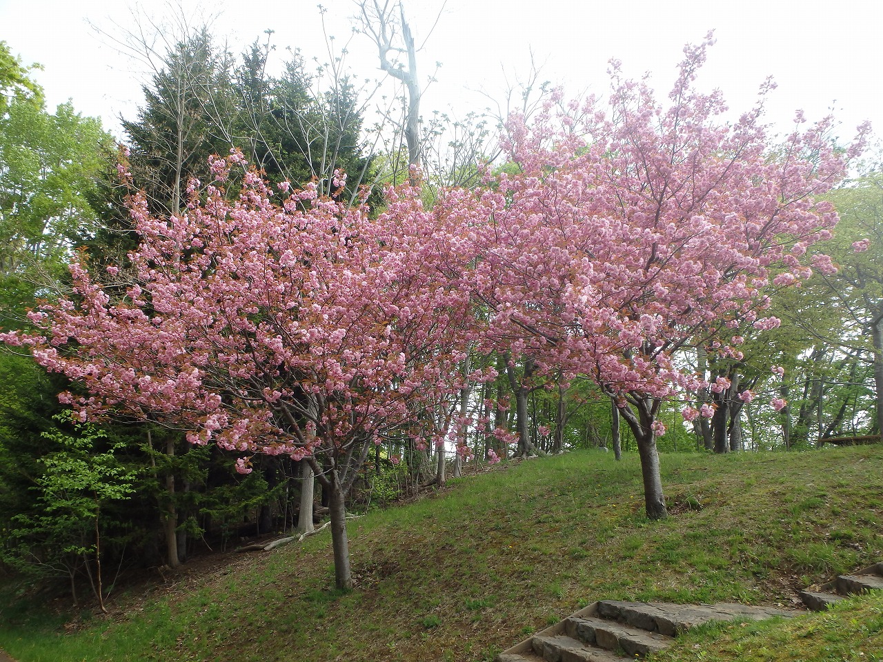 段上テラスの北側にある桜並木のエゾヤマザクラは終わりましたが、