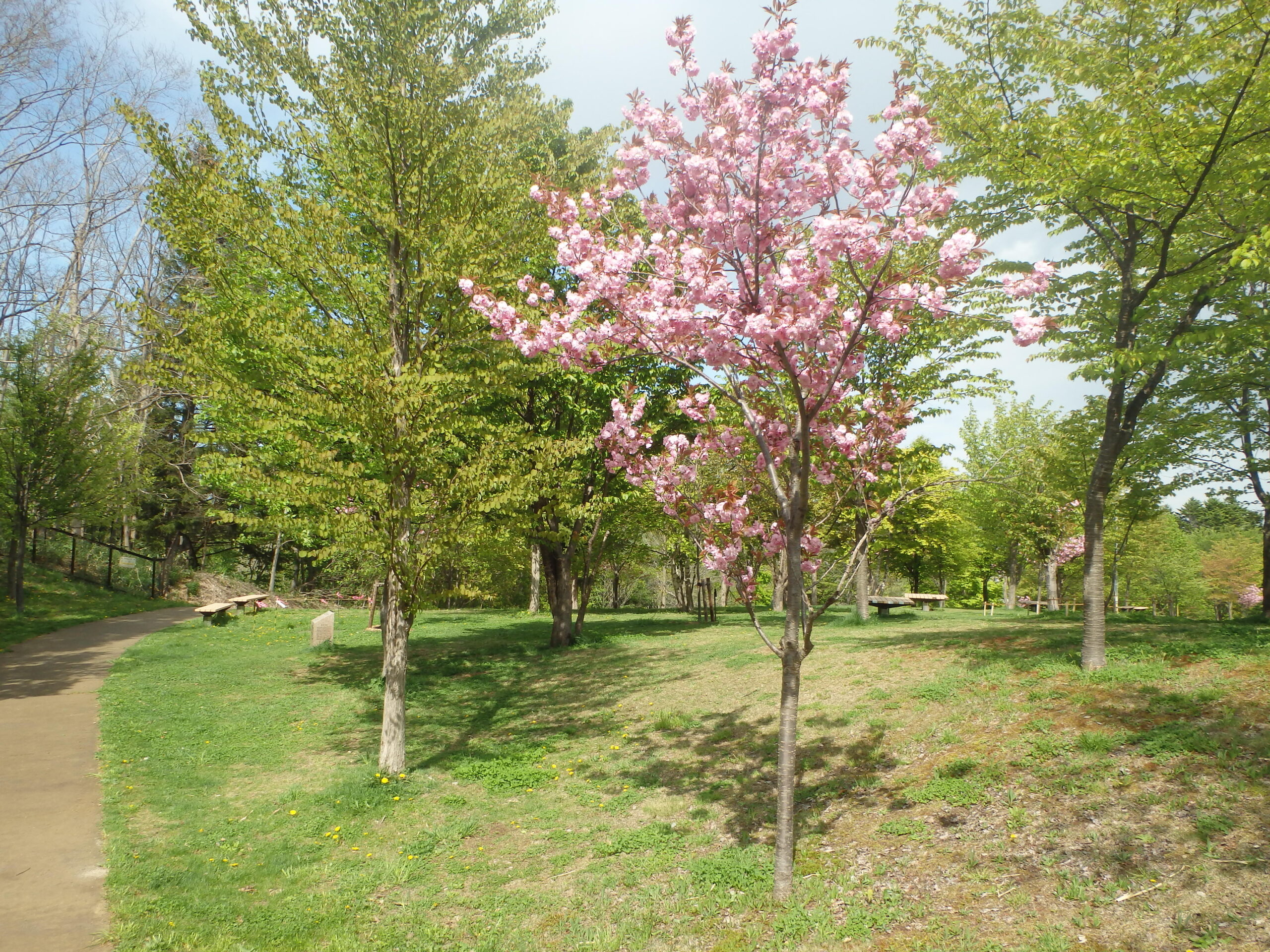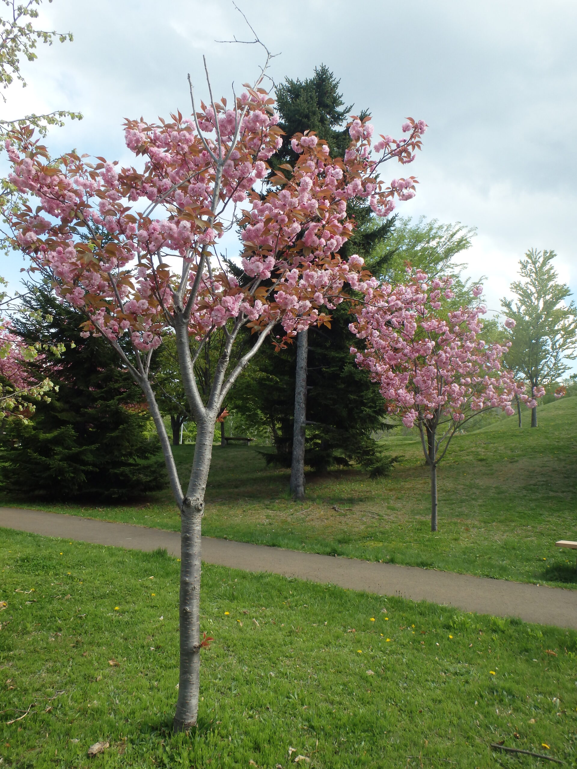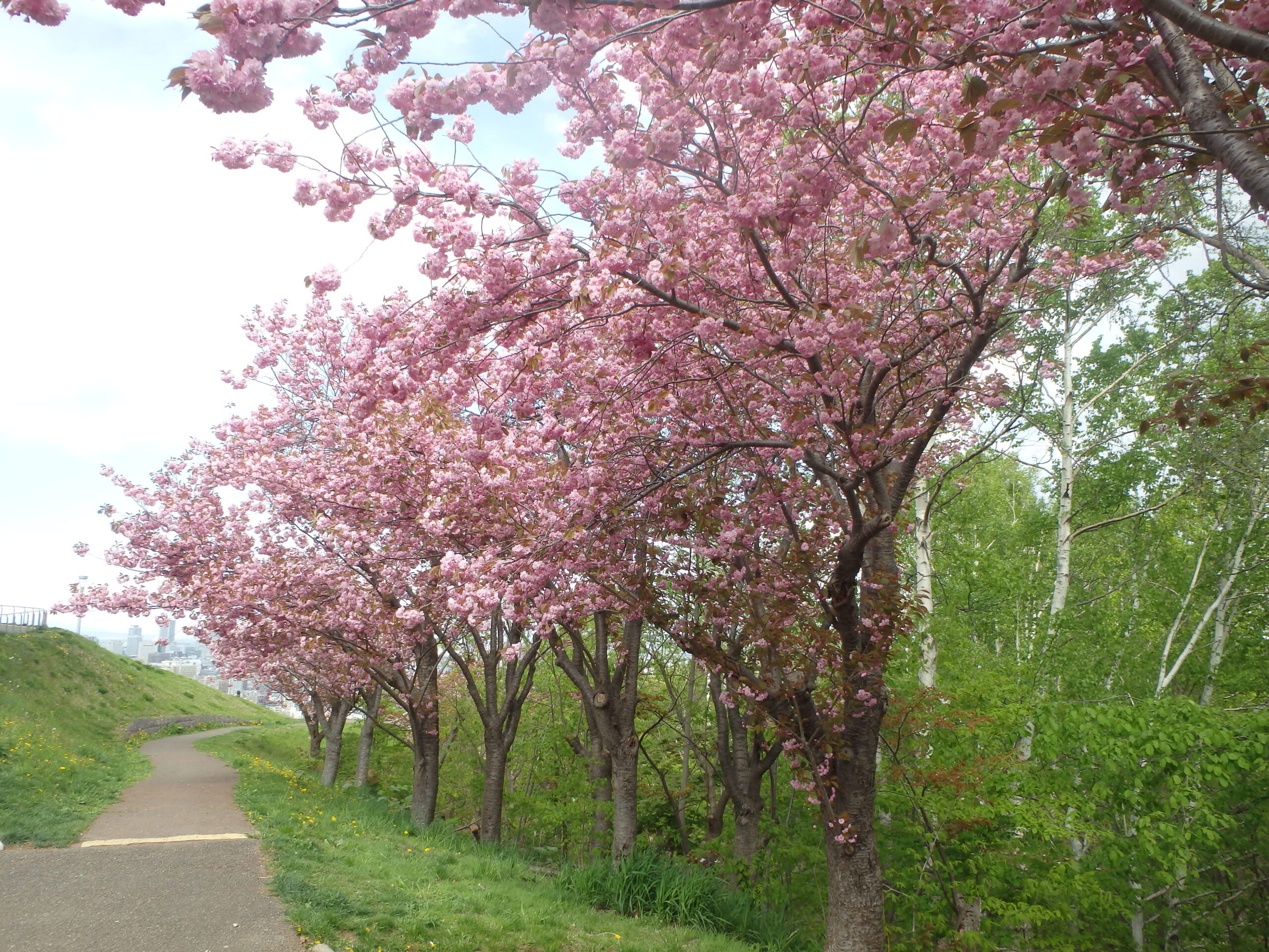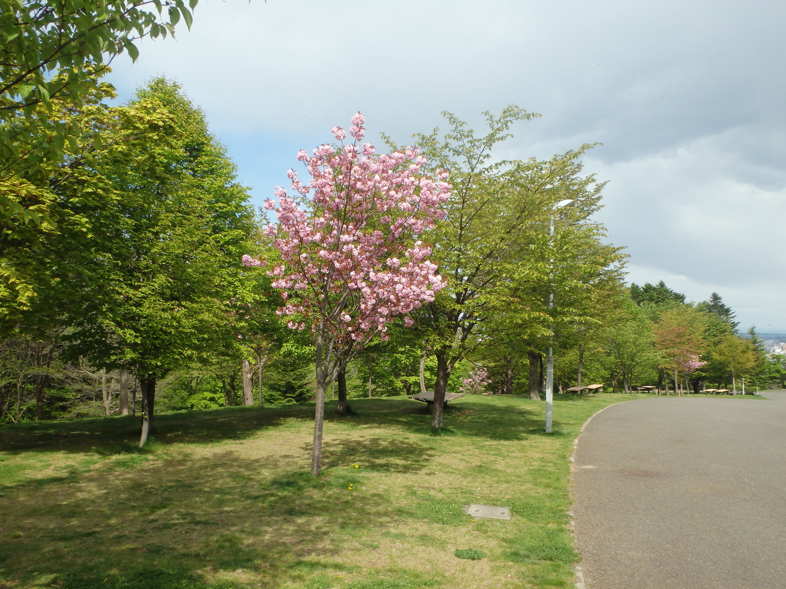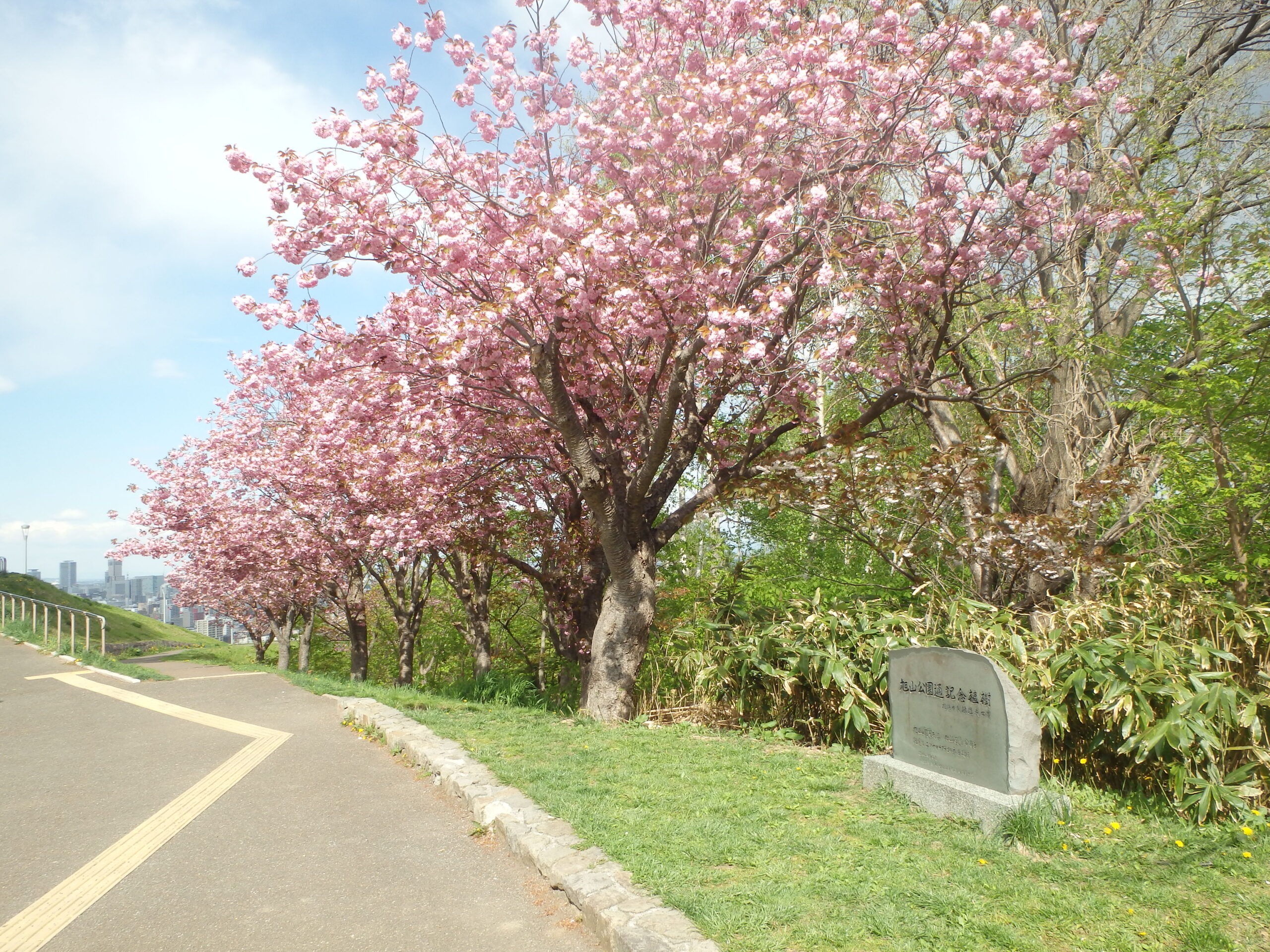 旭山記念公園の桜は、八重桜が満開で見頃を迎えております。