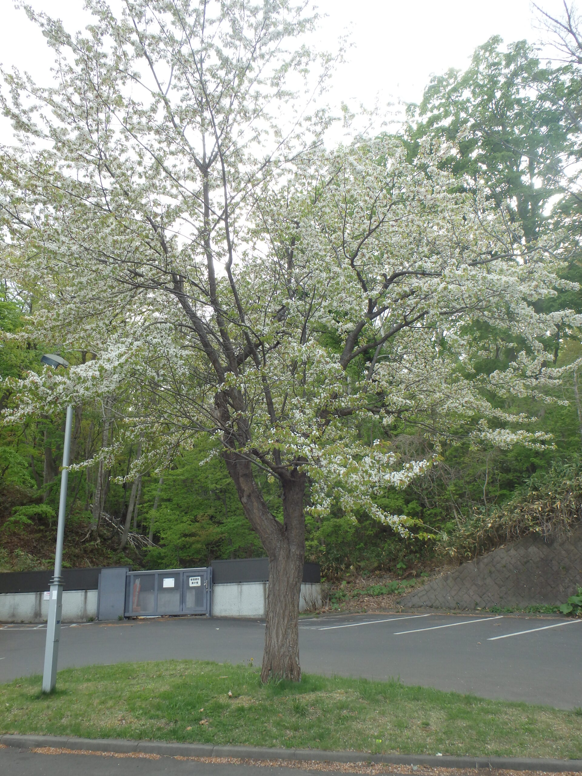 噴水広場より北側にある、展望デッキ横の八重桜間も満開です。