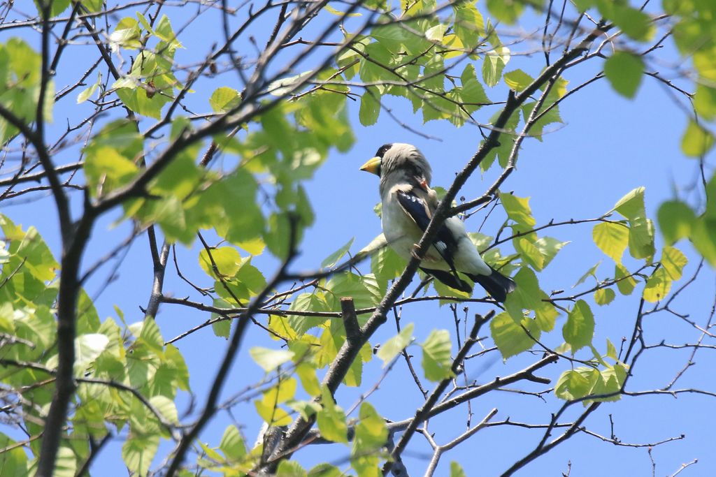 5月13日の野鳥観察会の際にアーチ橋近くのポプラで10分近く観察することができ、さらに観察会終了後の10時過ぎに森の家の前に現れてやはり10分ほどいました。