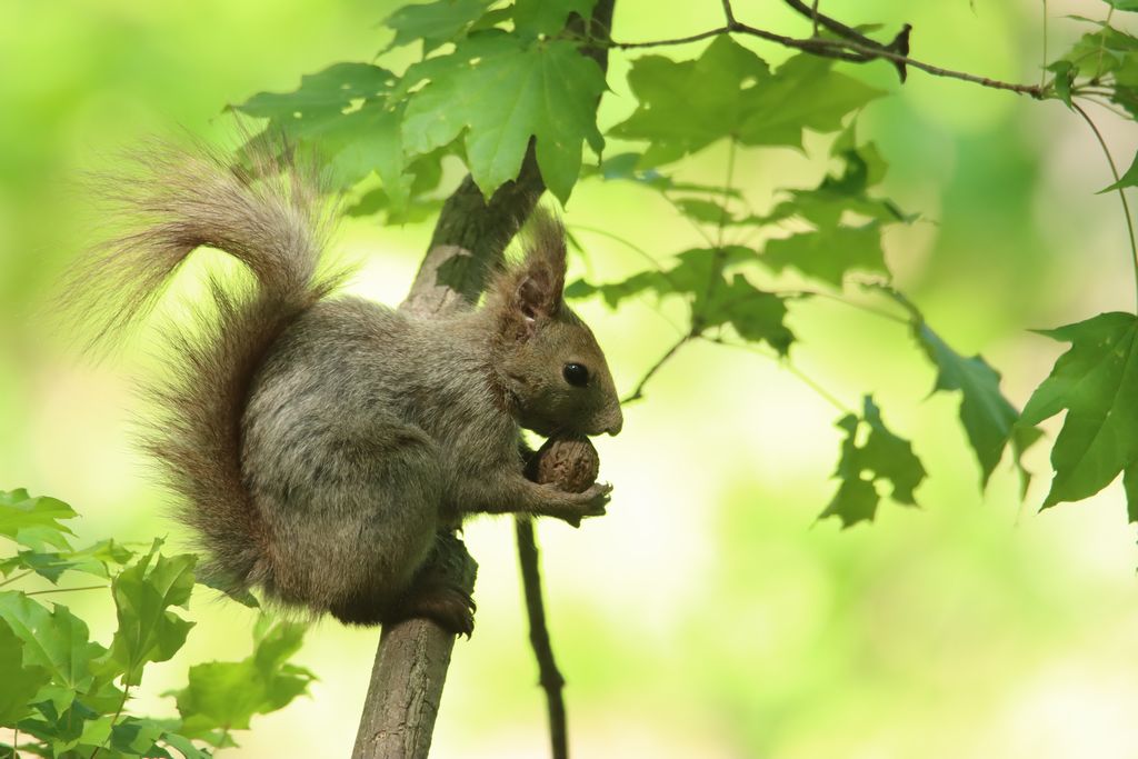 園内でよく見られていますが、レストハウス周辺や展望台では人が持っている食べ物を奪おうとする個体がいるので、くれぐれもご注意ください。