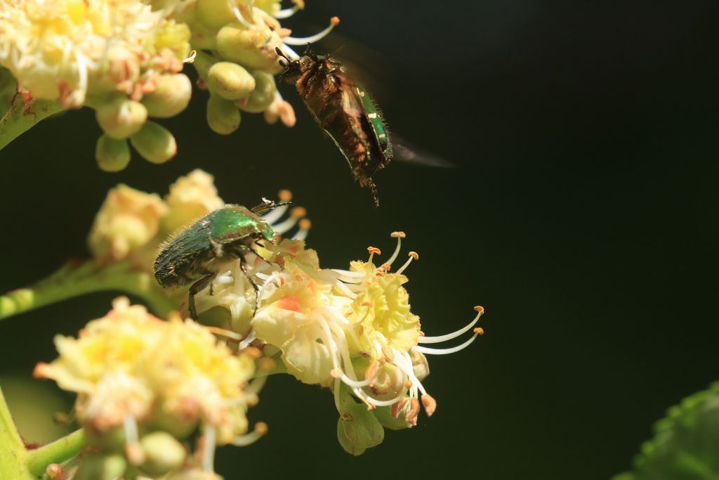 やはり甲虫の仲間で、ミズキの花(もう終わりましたが)など、この時期に咲く樹木の白い花によく集まってきます。