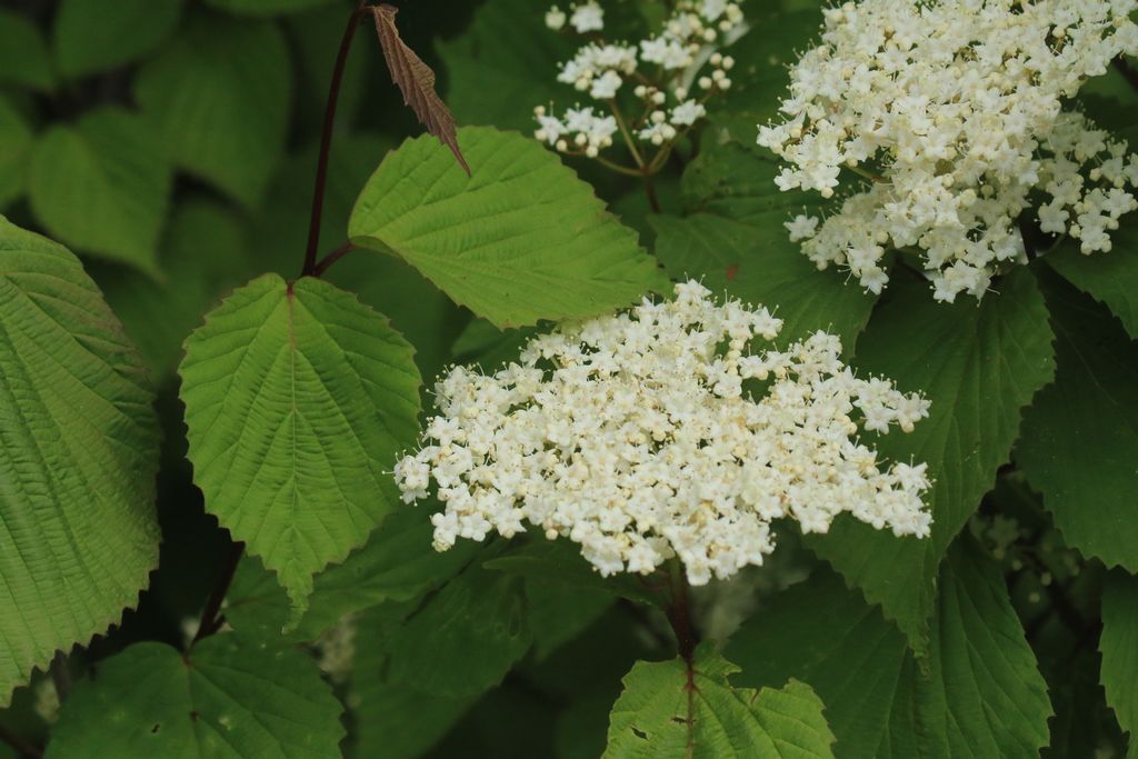 展望台北西側手すり沿いに咲いている写真の白い花はミヤマガマズミです。