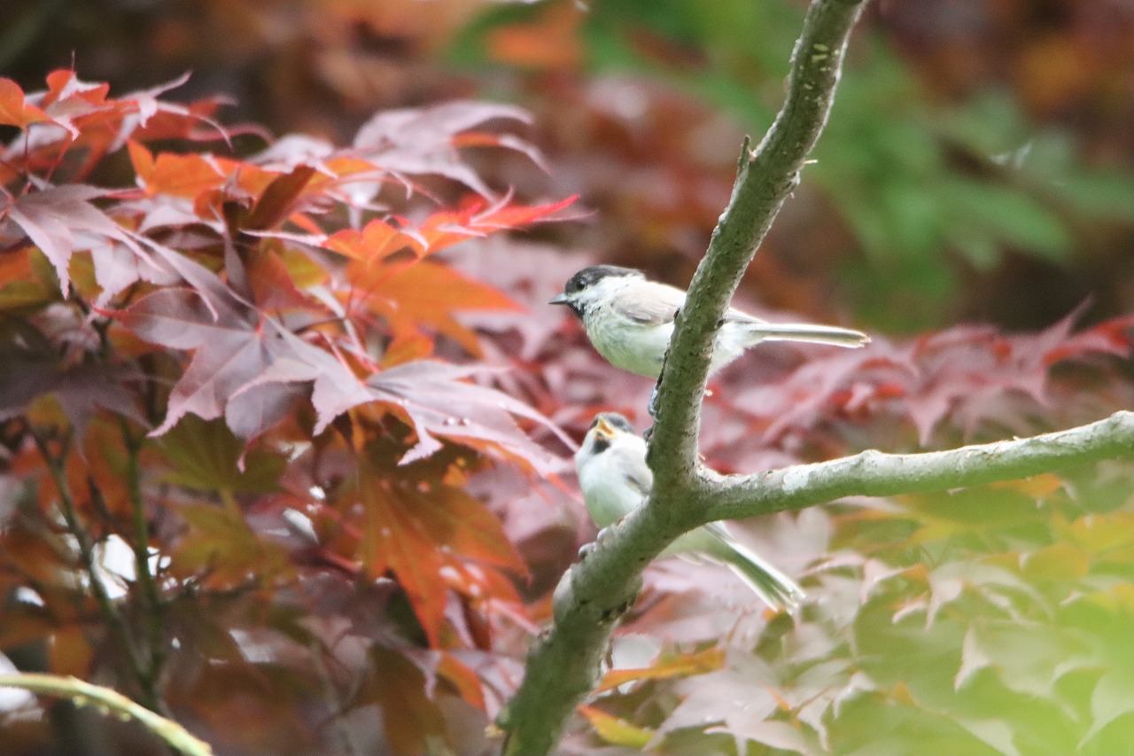 写真、四季の散歩道で撮影したものですが、親が雛に餌を与えようとしていました。