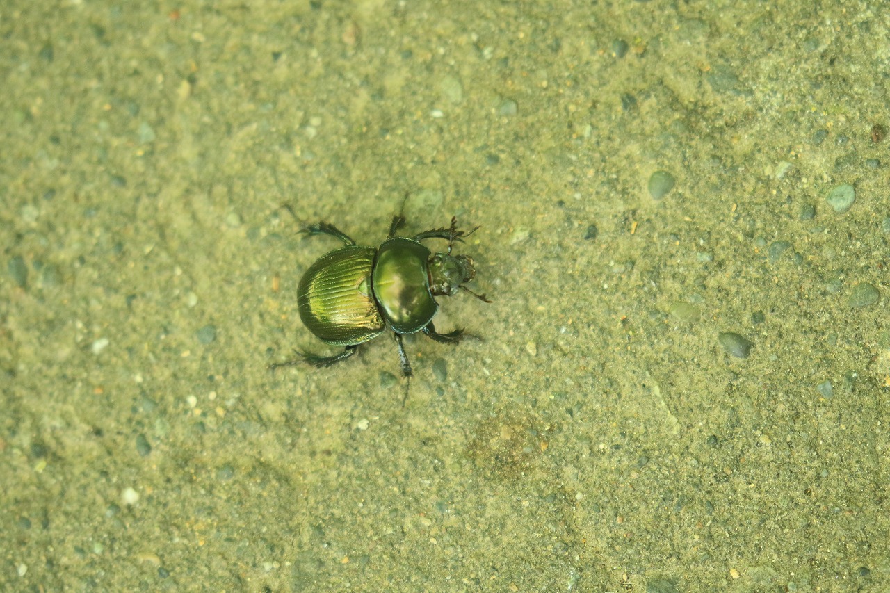 地面を歩いて餌を探す甲虫で、甲羅の光沢がきれいです。
