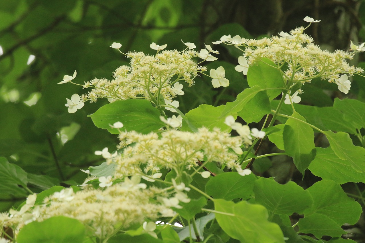 ポートランドの森では2本の木に巻き付いて白い花を咲かせています。
