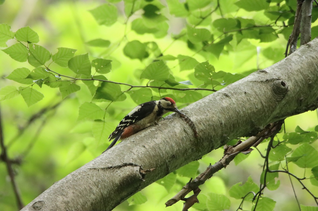 しかし7月5日以降はこのクマゲラの確かな観察情報は入っておらず、幼鳥が巣立って行動範囲を広げてゆく過程で森の家の前にも来たのだと推測されます。