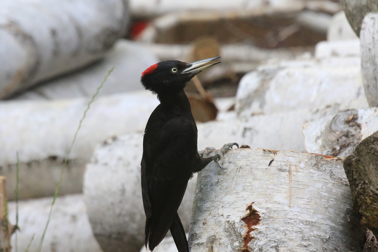 下が4日に撮影した♀成鳥、森の家の外に積んであるシラカンバの丸太にとまりました。