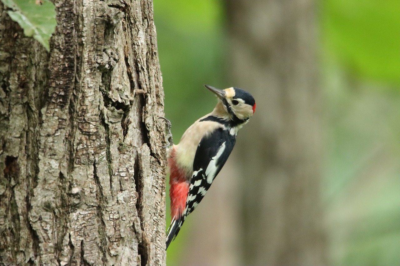 また、この写真では、アカゲラの特徴でありオオアカゲラとの識別ポイントのひとつである「翼の逆八の字型の白い斑」がよく分かります。