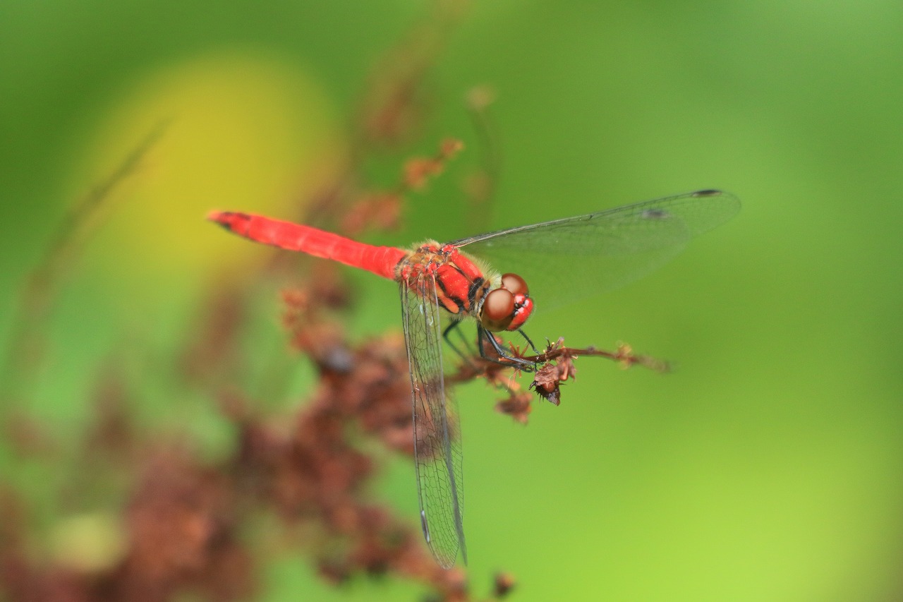 その名の通り、ナツアカネは夏が終わってそろそろ見られなくなり、代わってアキアカネが大量に飛ぶようになります。