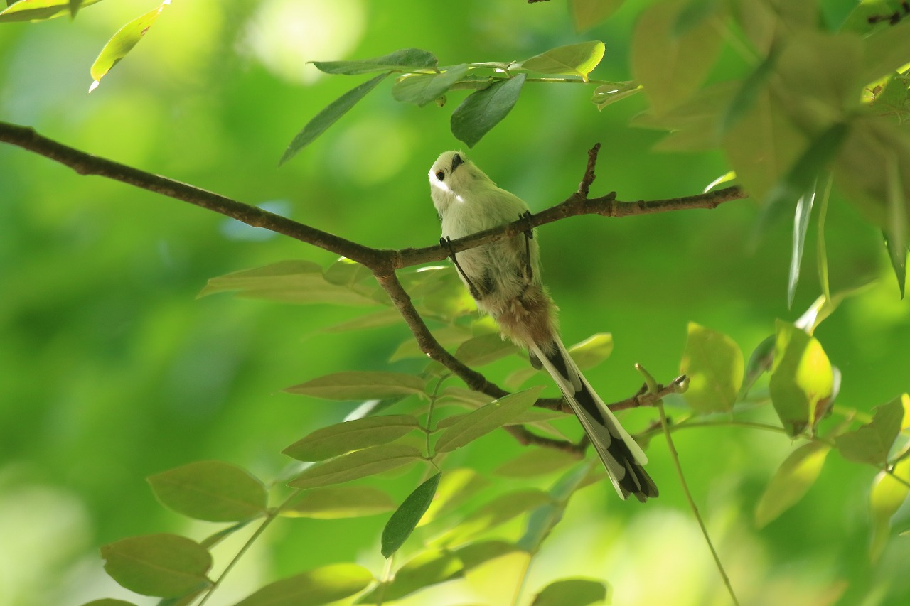 エナガだけの5~10羽ほどの群れでいることもあれば、カラ類混群の中に2、3羽いて最初気づかないこともありますが、根気よく長く声を聞いているといつか「ジュルッ」と鳴きます。