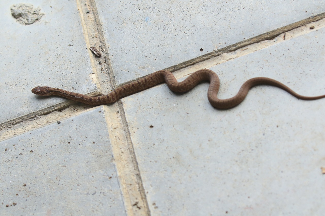 シマヘビは森の家の周りでよく見られ、建物の隙間や薪の間に住んでいる可能性がありますが、これだけ小さい幼蛇を見たのは初めてでした。