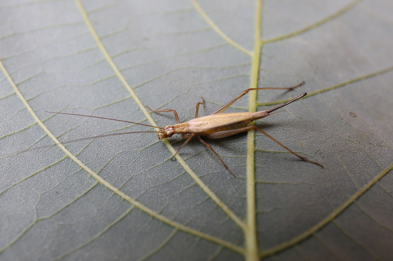 写真は♀で、後ろ脚のさらに後ろに産卵管が伸びています。