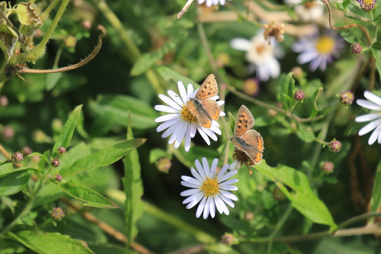 ベニシジミが2頭でエゾノコンギクに寄って来ていました。