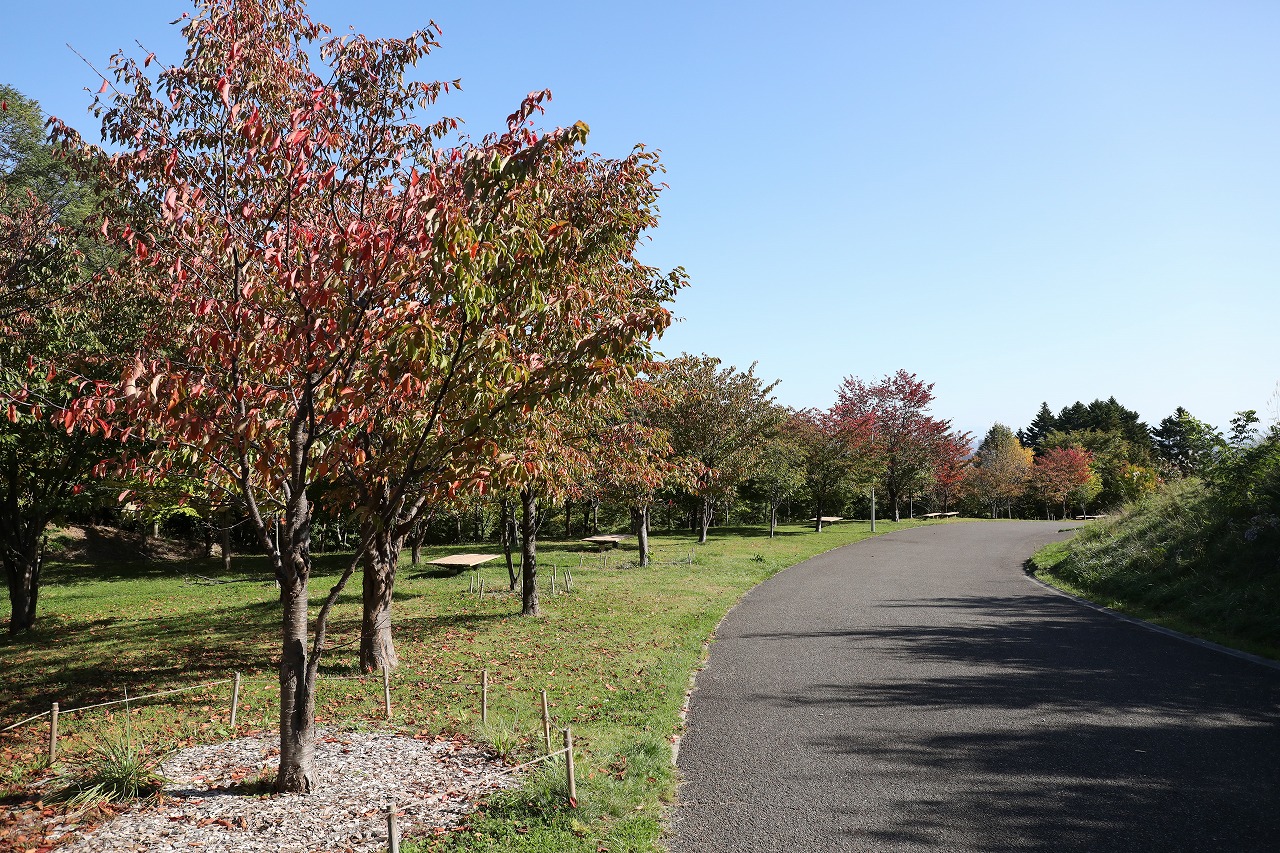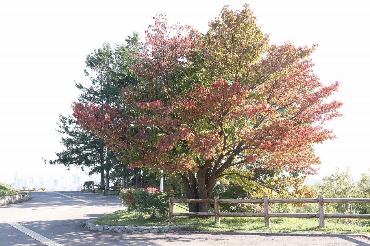 展望台一本桜、紅葉が進んできています。