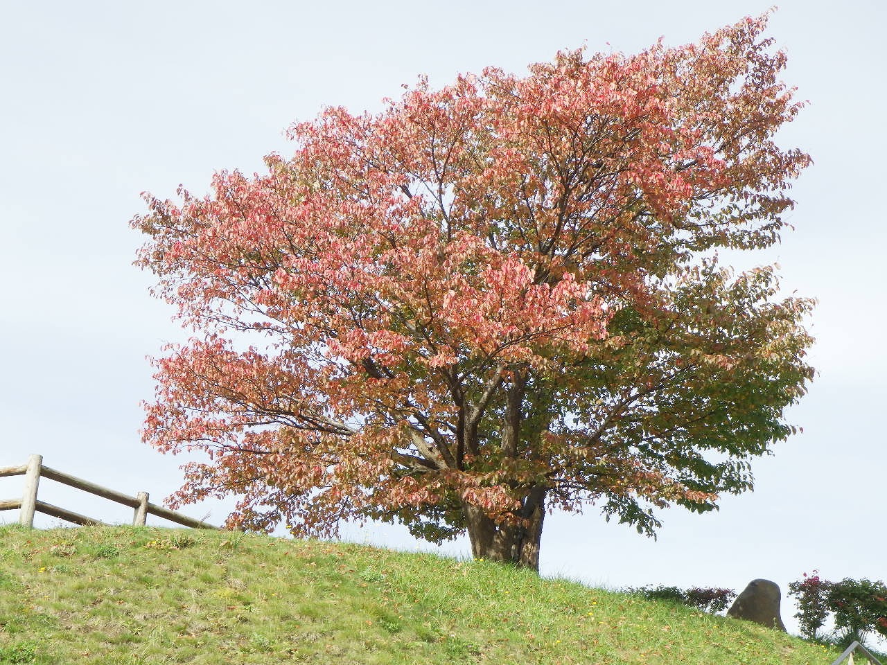 展望台一本桜の葉もだいぶ赤くなってきました。