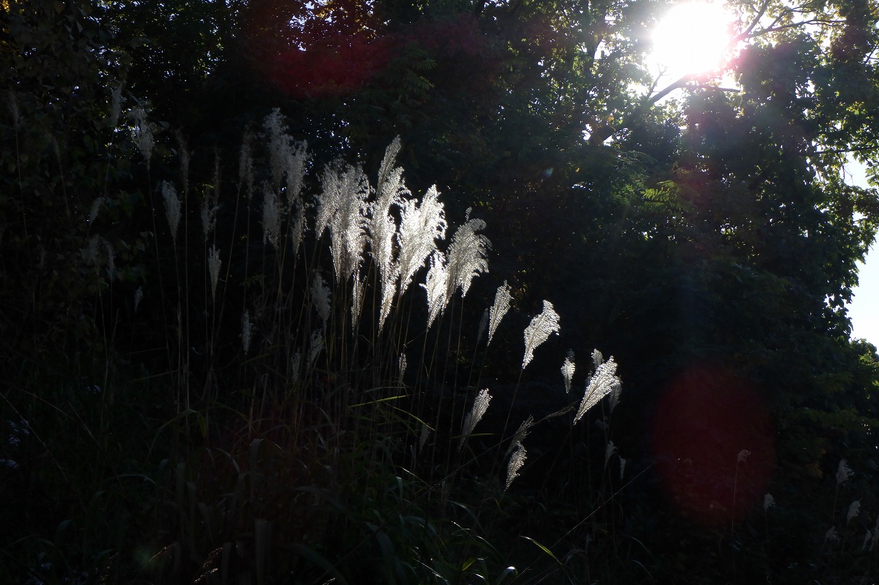 1枚前の写真を撮ってふと右を見ると、ススキが逆光に照らし出されていました。