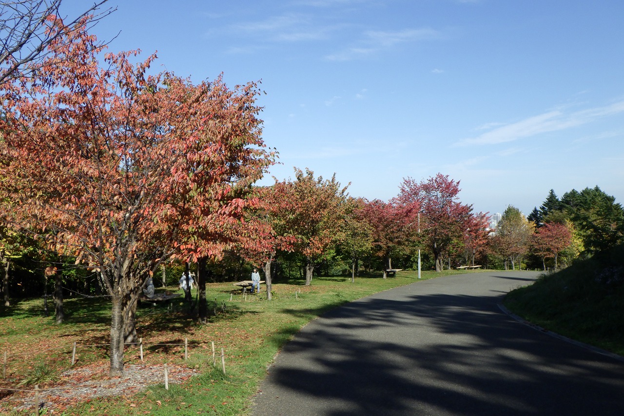 3日前を思い出すとずいぶんと木々の葉の色づきが進んだな、と感じさせる本日の旭山記念公園でした。