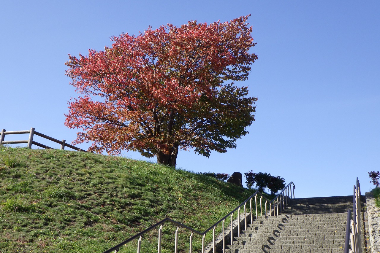 旭山でいちばんきれいに色づくヤマモミジ、ですが・・・