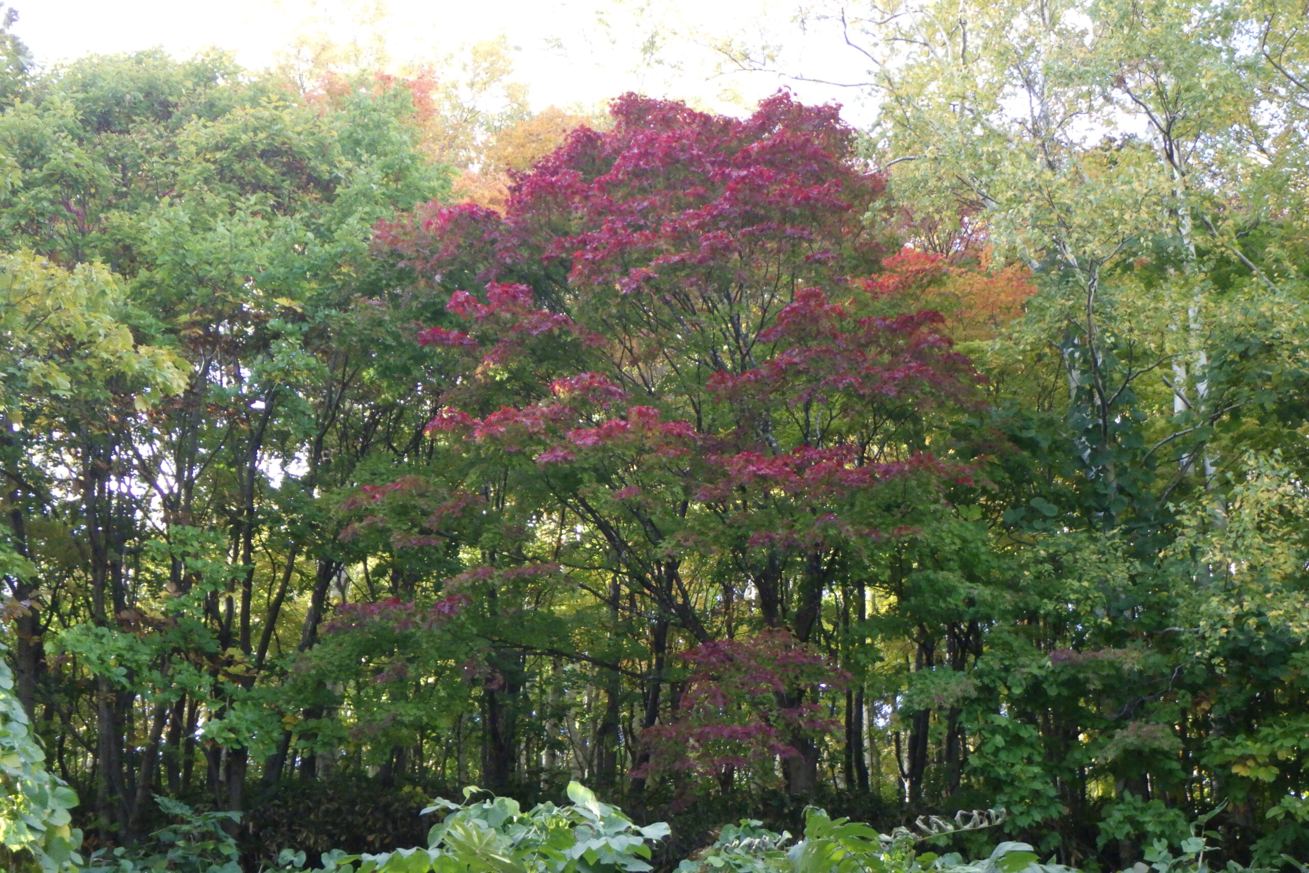 第1駐車場入口のヤマモミジ、駐車場の外側から。