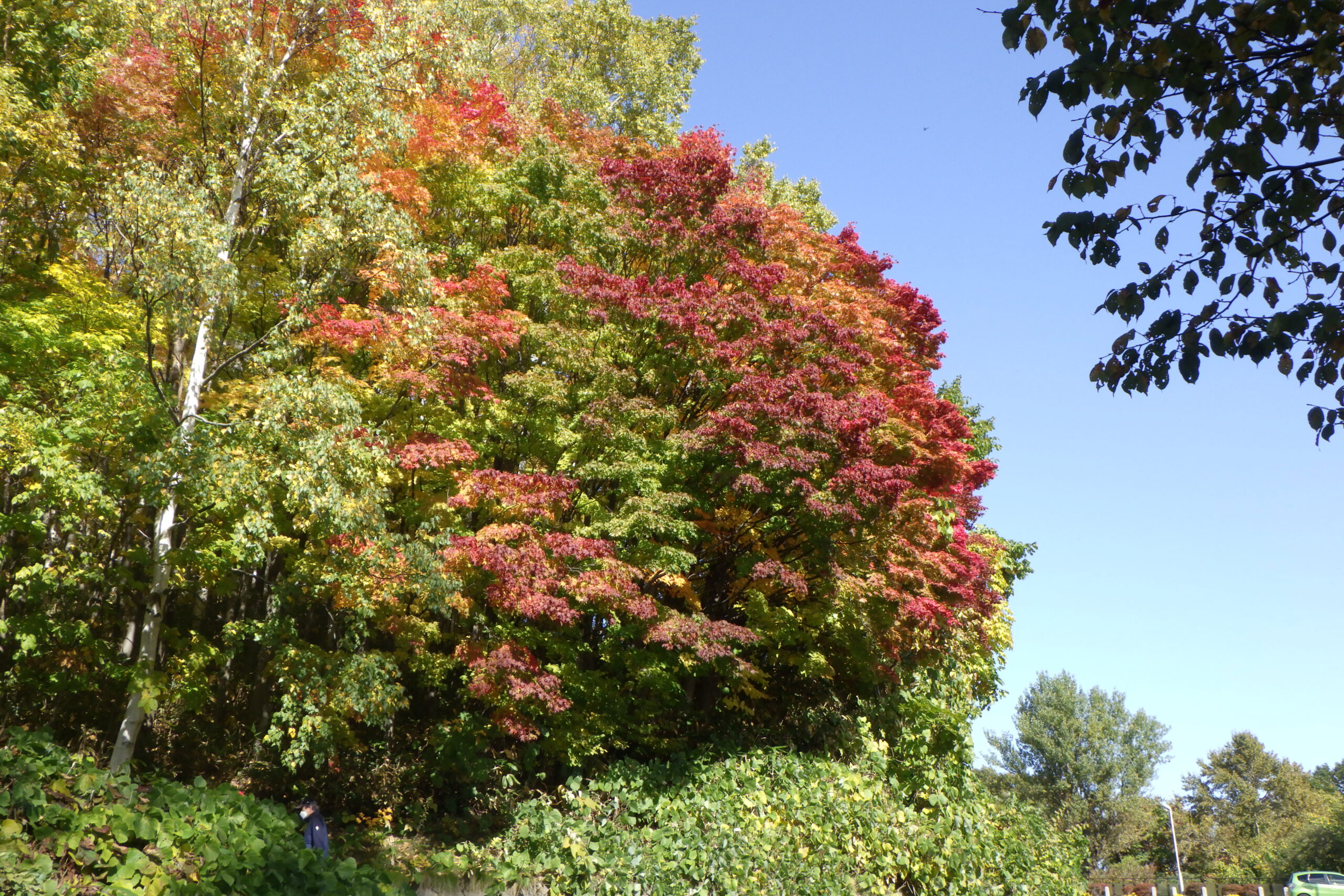第1駐車場入口のヤマモミジ、駐車場の外側から。