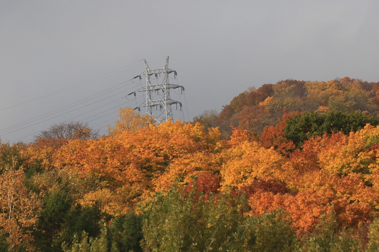 幌見峠方面の鉄塔と周りの木々の色づき。
