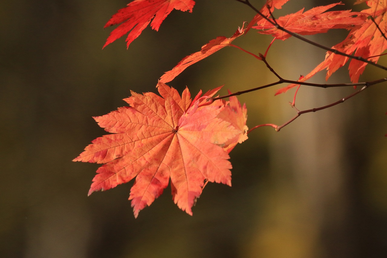 旭山でいちばんきれいに色づくヤマモミジ、残った葉が少ないとはいえ、近くで見るときれいです。