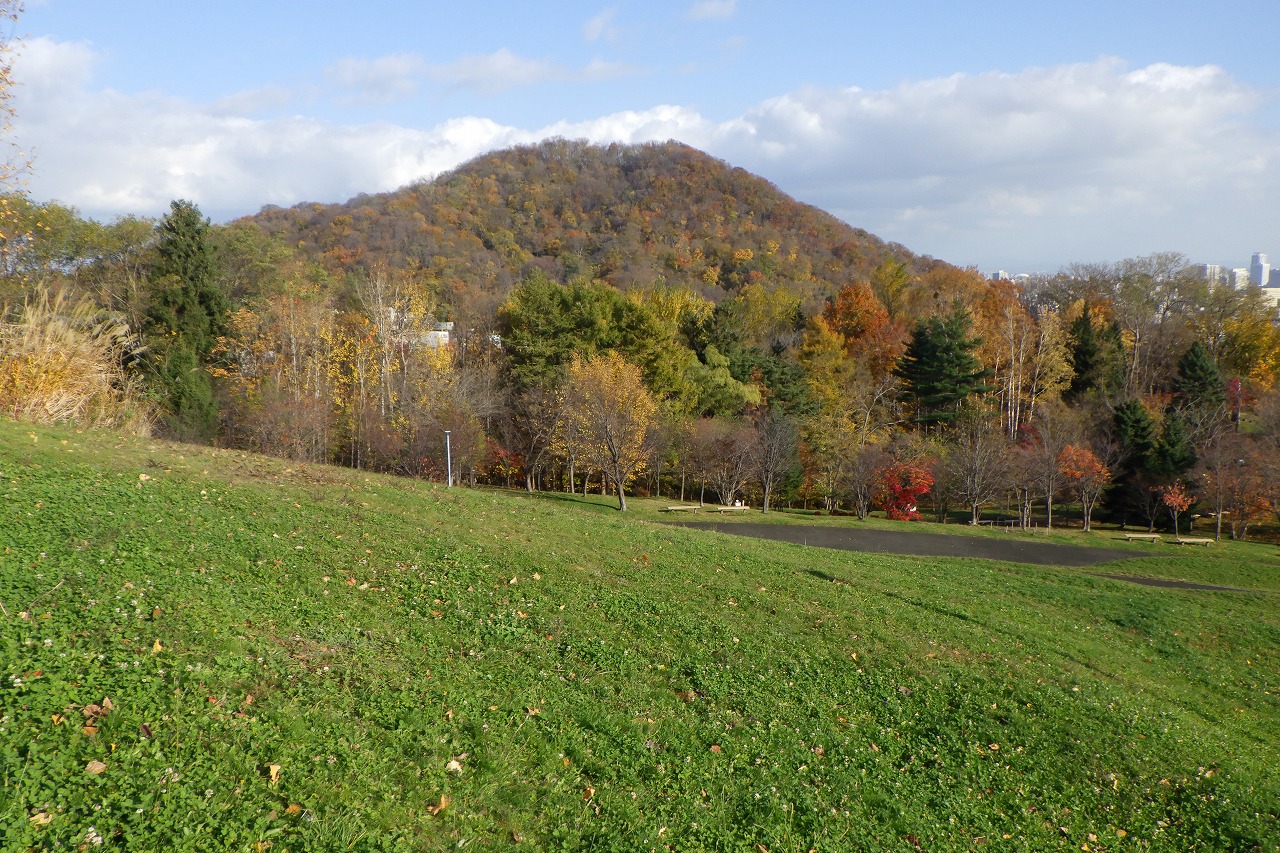 ここ数日で一気に葉が落ちた円山と新桜並木。