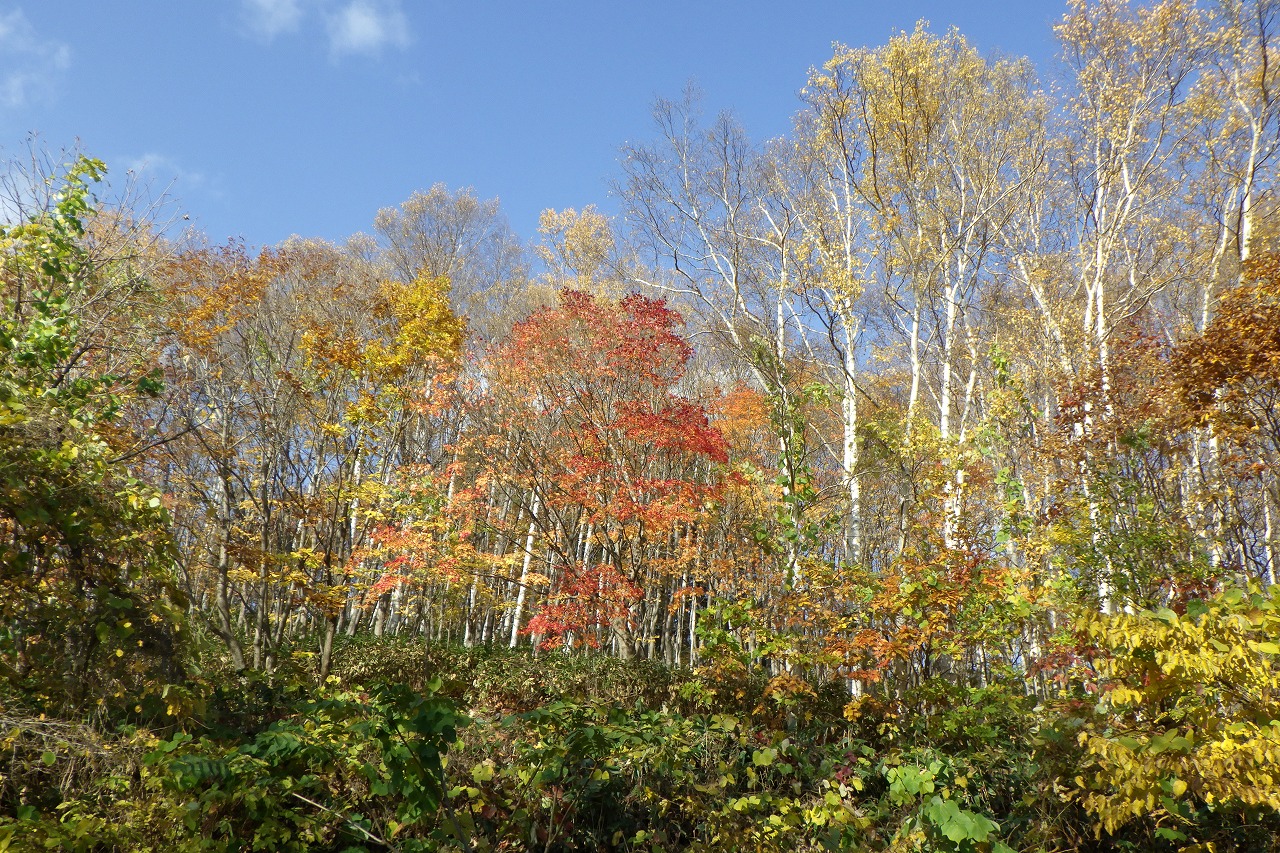 第1駐車場西側斜面、紅葉もまだ残っています。