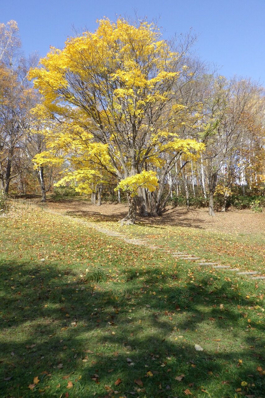 遊具広場のイタヤカエデはきれいに黄色く色づいてきましたが、風でだいぶ葉が散り、今年はボリューム感はいまひとつといったところ。