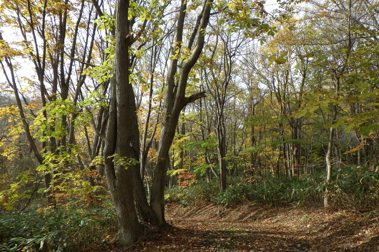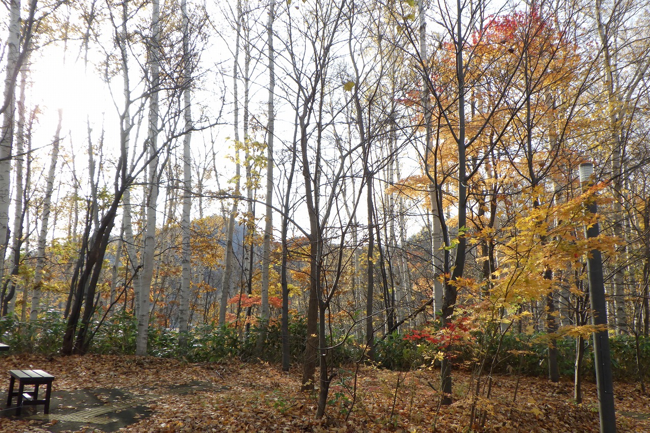 記念樹の森も木々の葉が落ち、藻岩山が木の間越しに見えるようになりました。