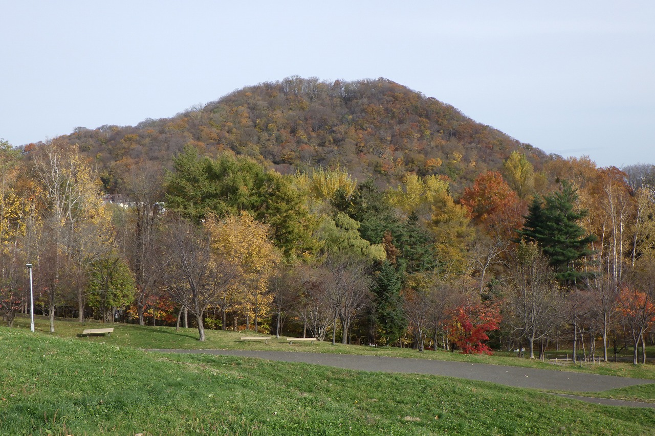 「四季の散歩道」、藻岩山が向こうに見えます。