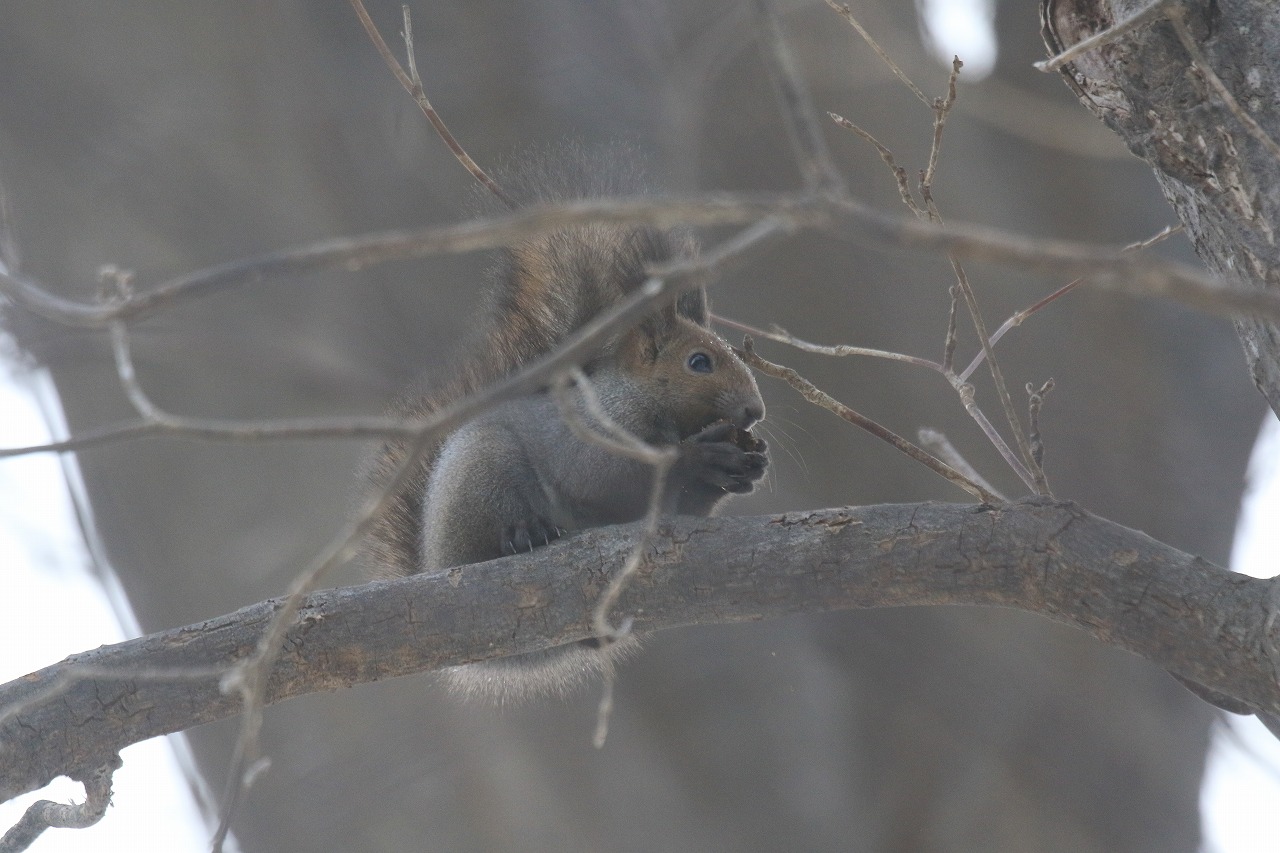 昨日12月14日は「ちびっこ広場」、一昨日12月13日は「エゾリスの森」と森の家周辺で午前中に2回見られました。
