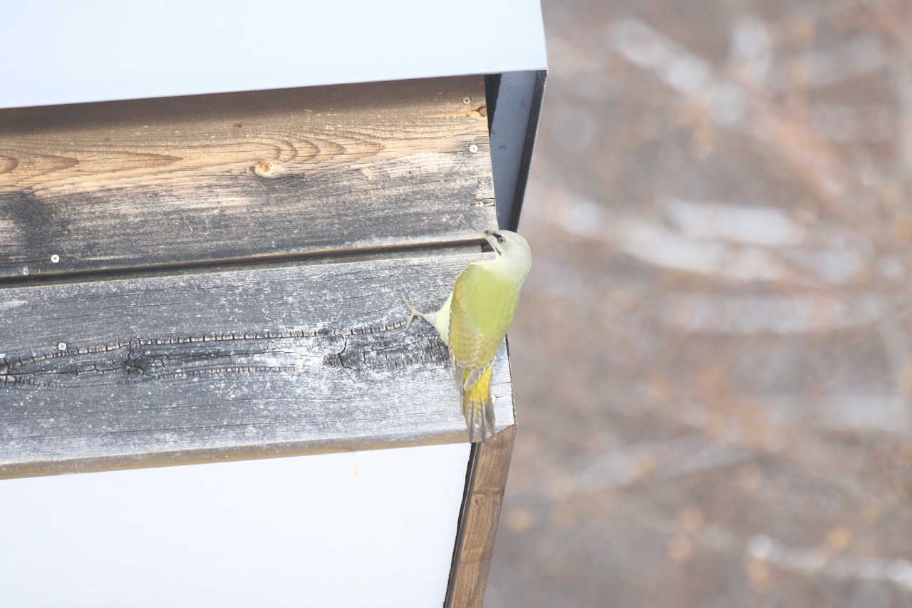 写真はその12月13日に撮影、森の家の屋根にとまった♀です。