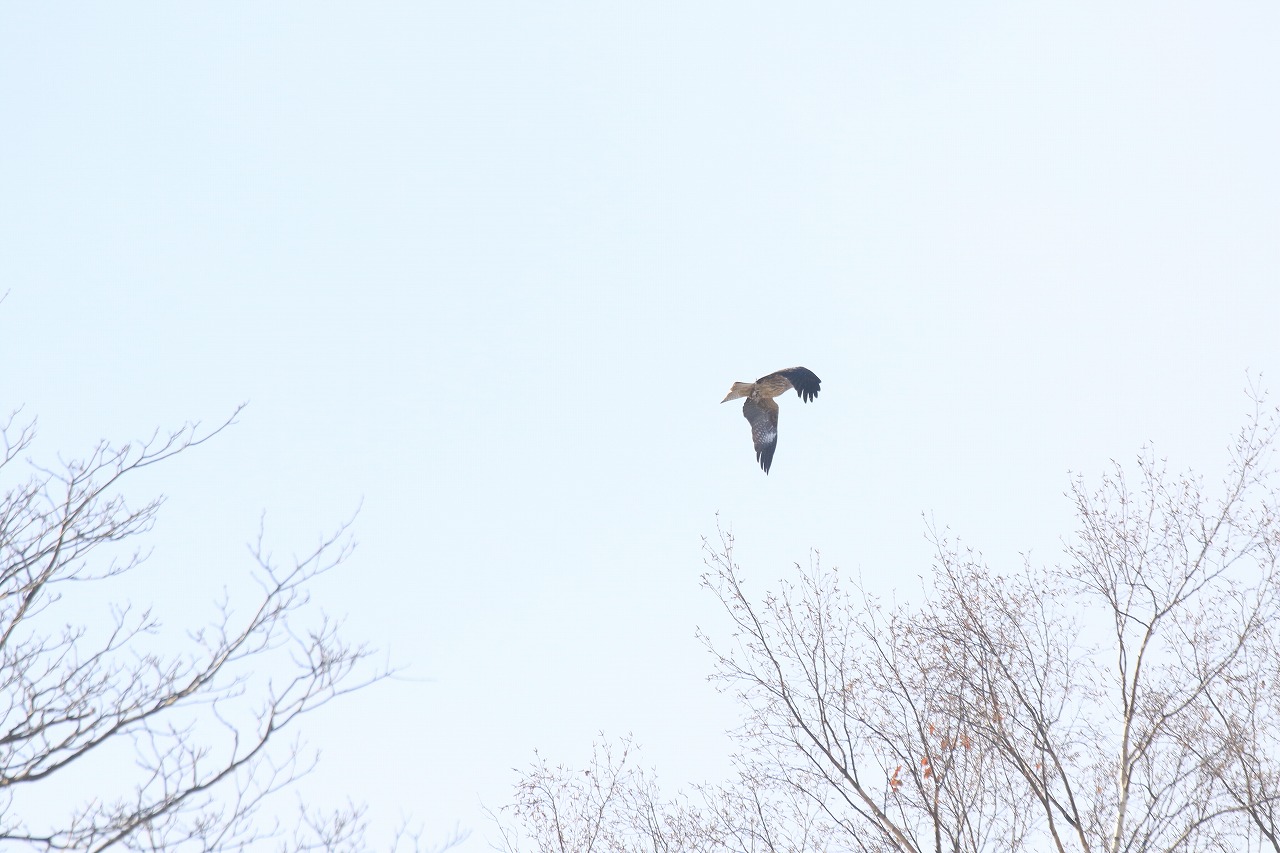 今週は園内での観察情報がありましたが、低く飛んでハシブトガラスにモビングされていました(写真は追われた後の1枚)。