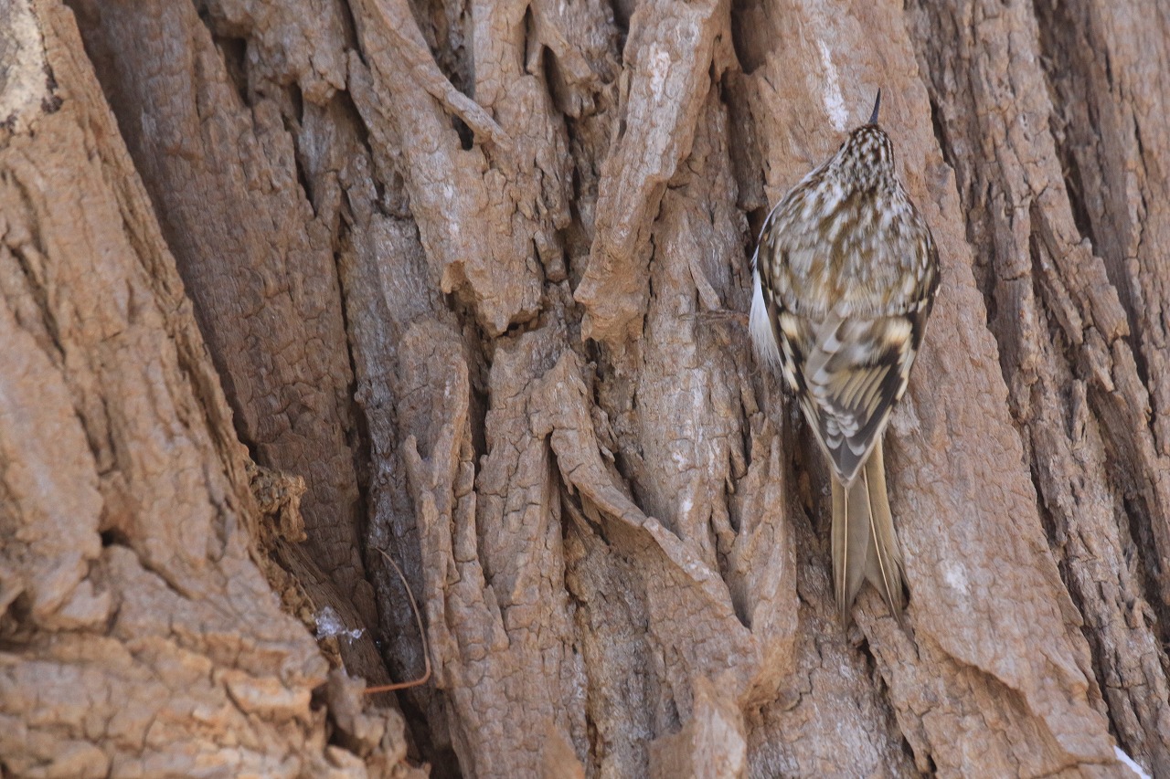 園内各所で観察機会は多いですが、ミズナラ(写真)やその他のまだ木に残っている葉に寄って虫か何かを食べている光景をよく目にします。
