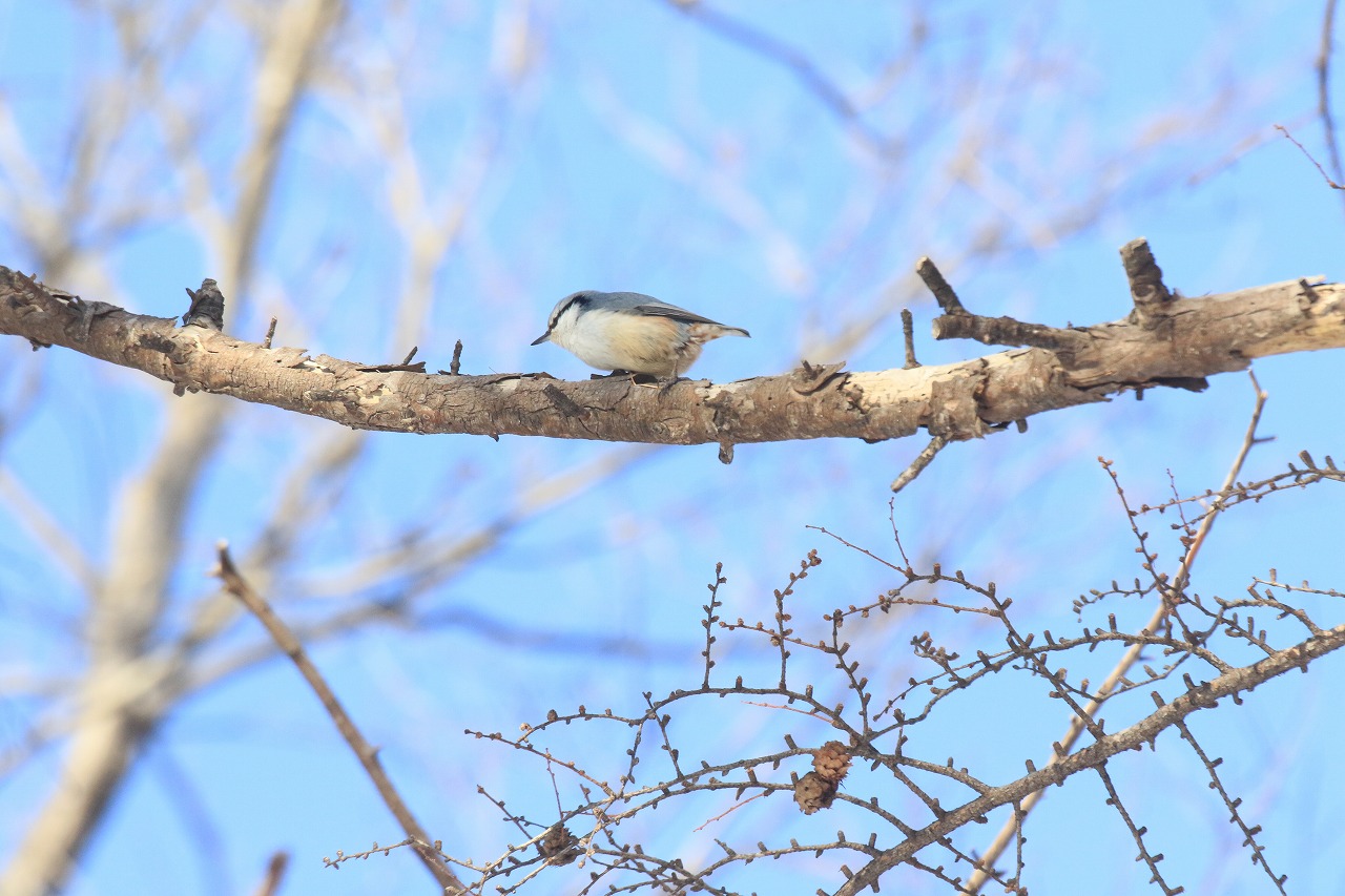 1月25日木曜、9時半頃、「カラマツ林」でカラ類混群の中に4、5羽。