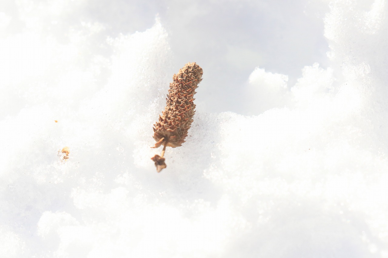 また、ベニヒワが食べたであろうシラカンバの種子の殻などの食べ跡も園内あちこちで見られるようになりました(下写真下)。