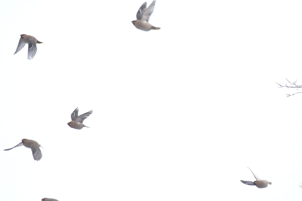 「チリチリチリー」という鳴き声はキレンジャクのもので、群れのすべて見たわけではないですが、見た中にはヒレンジャクは見つけられなかったです。