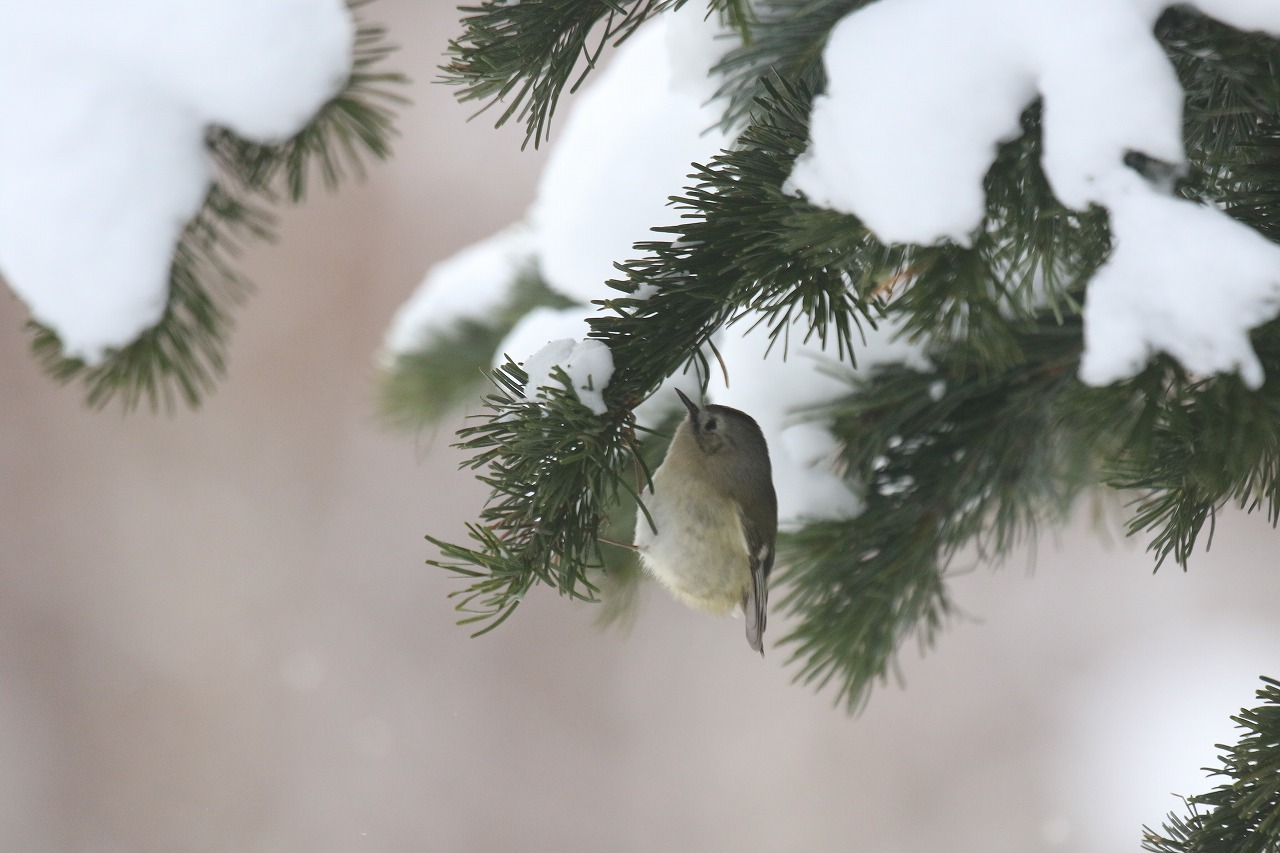 園内の常緑針葉樹や森の家付近のカラマツで見られており、囀りも聞く機会が多くなってきました。