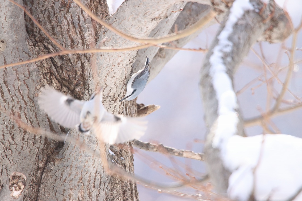 イタヤカエデの樹液ですが、先月下旬から平年より寒い日が続いているせいか、旭山では出ている木が少ないようで、シマエナガに限らずイタヤカエデの樹液を飲みに来る野鳥の姿を見ることはまだ少ないです。