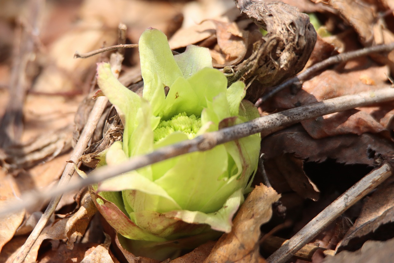 旭山で春真っ先に花が咲くナニワズ。