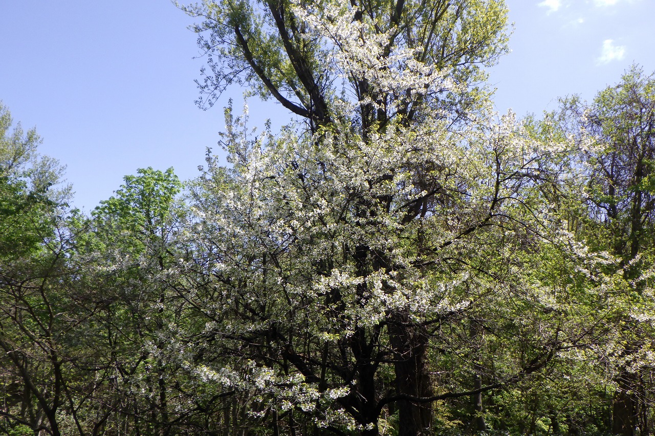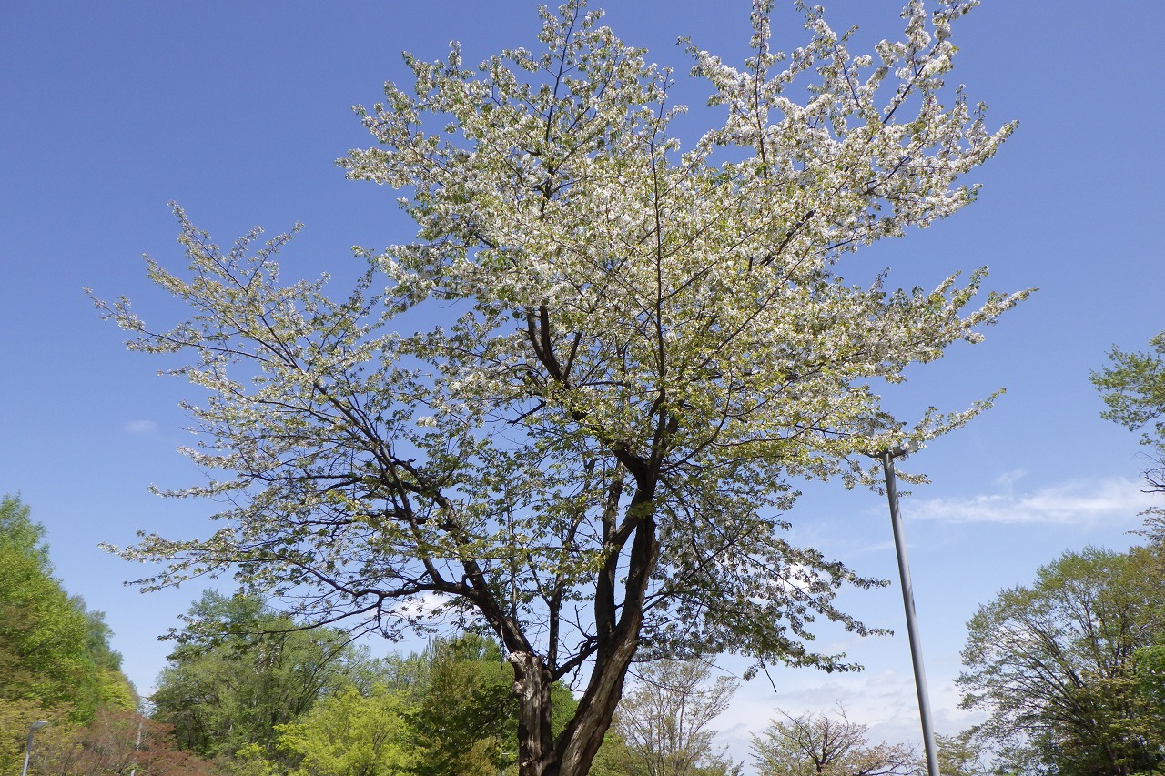 巨木の谷にあるセイヨウミザクラ。花びらが少し散ってきましたが、