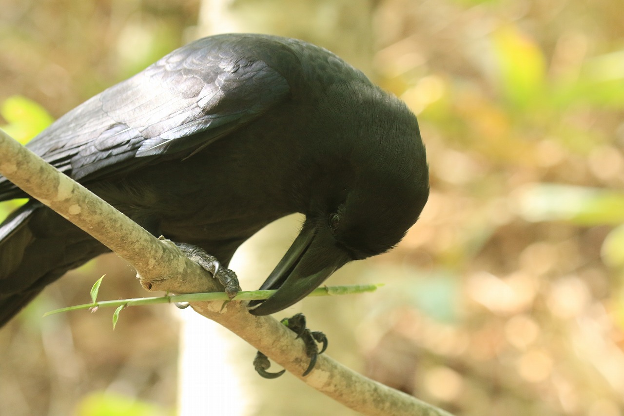 昨日5月10日、ハシブトガラスがクマイザサの新芽=笹の子を嘴で器用にもぎ取って食べていました。