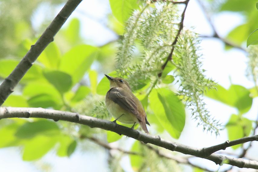 春先のコサメビタキはあまり声を出さずに行動し、囀りもめったに聞かれず、気づかないことも多いと思われますが、高木の梢でひらひらふわふわと飛んでいるのに気づくことがままあります。