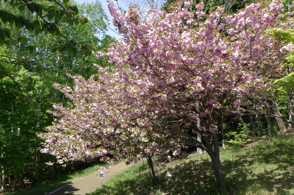 レストハウスの八重桜は花びらが散って葉の色が目立ち始めていますが、