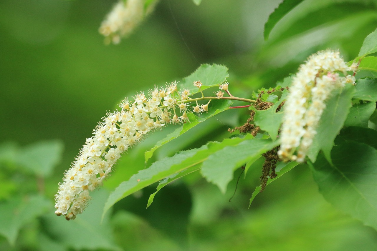 シウリザクラはバラ科の高木で、いわゆる普通の桜とは少し違う種類、花がブラシのように棒の周りにまとまってつき、これを総状花序といいます。